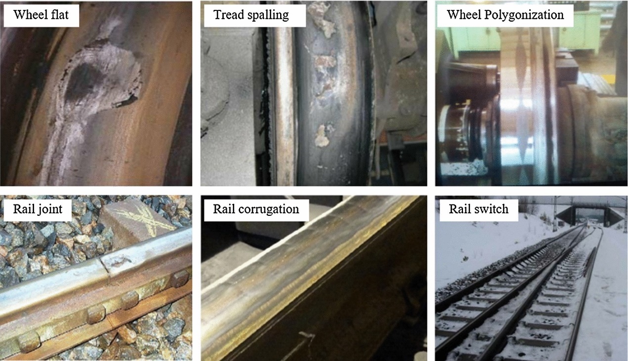 Fig. 1. Typical irregularities of wheel OORs and rail [26,27,28,29]
