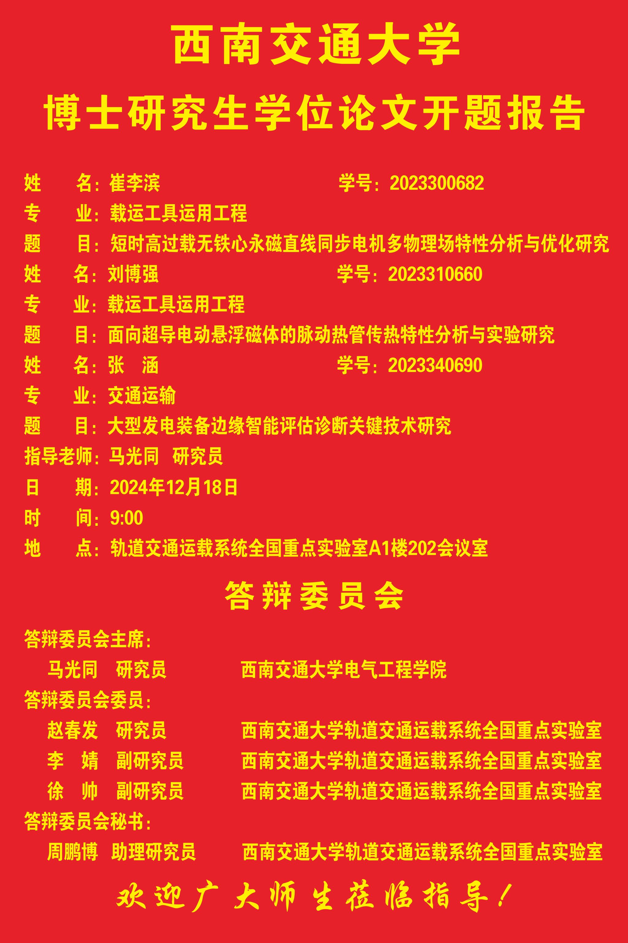 爱爱啦 崔李滨博士、刘博强博士、张涵博士学位论文开题报告