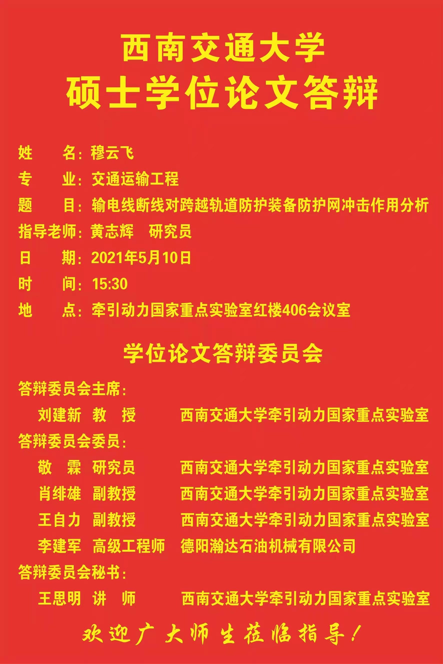 来源: 发布者:牵引动力研究生教育办公室 日期:2021/05/08 17:17:47 点击数: